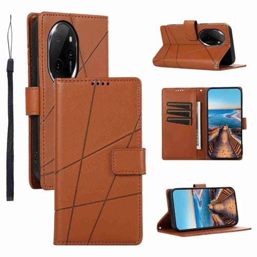 Funda para Honor 100 Pro PU con Línea en Relieve y Textura de Cuero Genuino (Marrón)