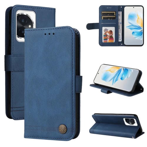 Funda de Cuero para Honor 100 Skin Feel Life Tree con Botón de Metal (Azul)