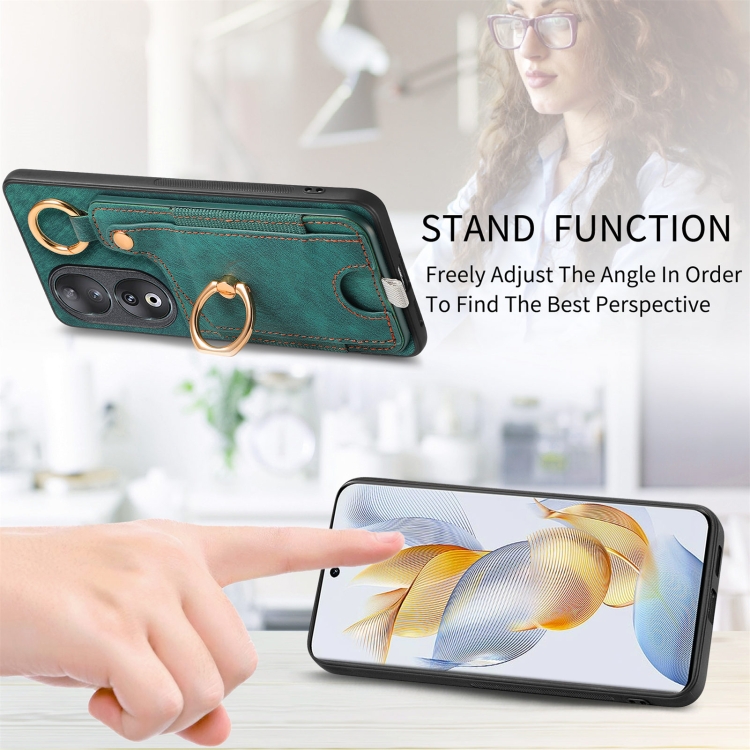 Funda para Honor 60 con Bolsa para Tarjeta, Anillo y Lazo para Colgar (Verde)