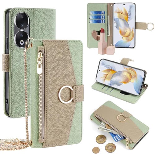 Funda para Honor 90 5G de Cuero con Textura Litchi Cruzada (Verde)