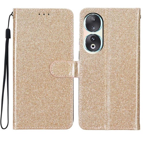 Funda de Cuero para Honor 90 con Tapa y Purpurina en Polvo (Dorado)