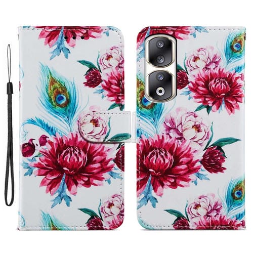 Funda para Honor 90 Pro de Cuero con Tapa Horizontal y Patrón Pintado (Flor de Pavo Real)