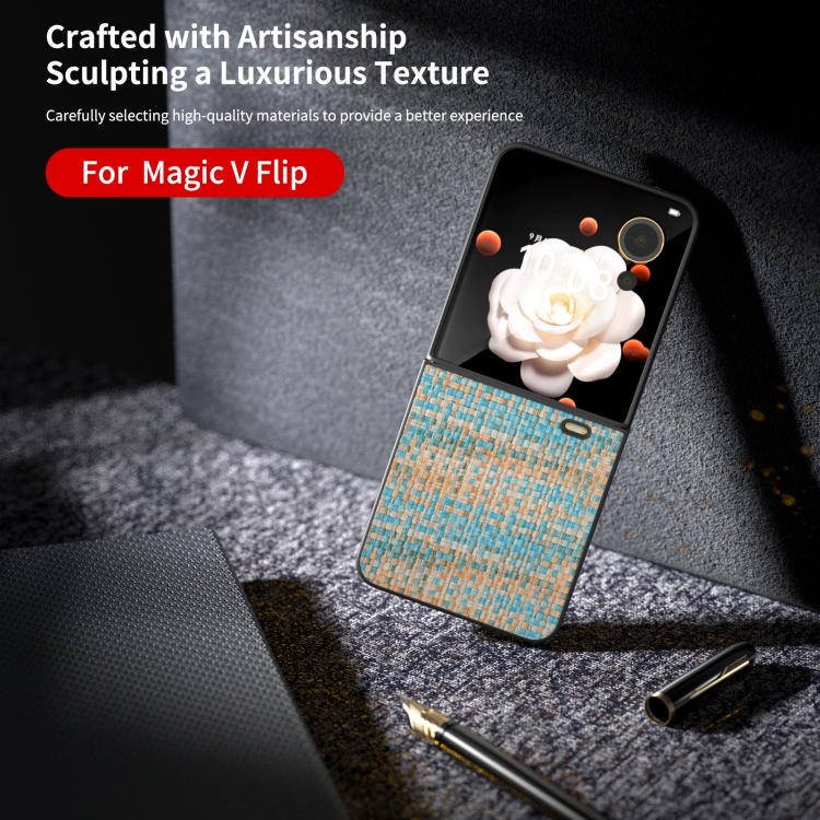 Funda para Honor Magic V Flip con Textura Lattice Color Azul en PU