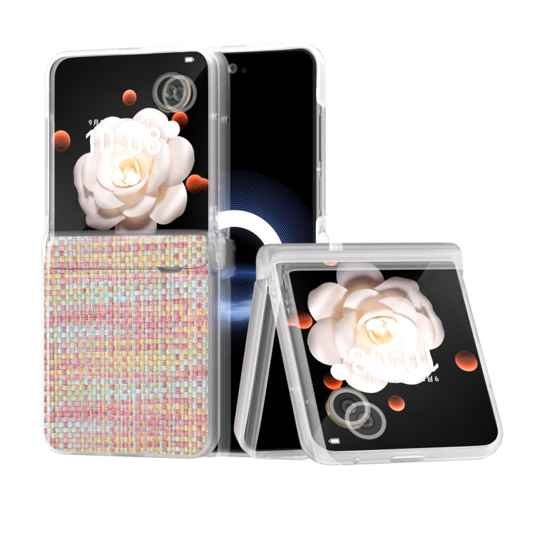 Estuche para Honor Magic V Flip de PU con Textura de Celosía y Marco Translúcido Esmerilado (Rosa)