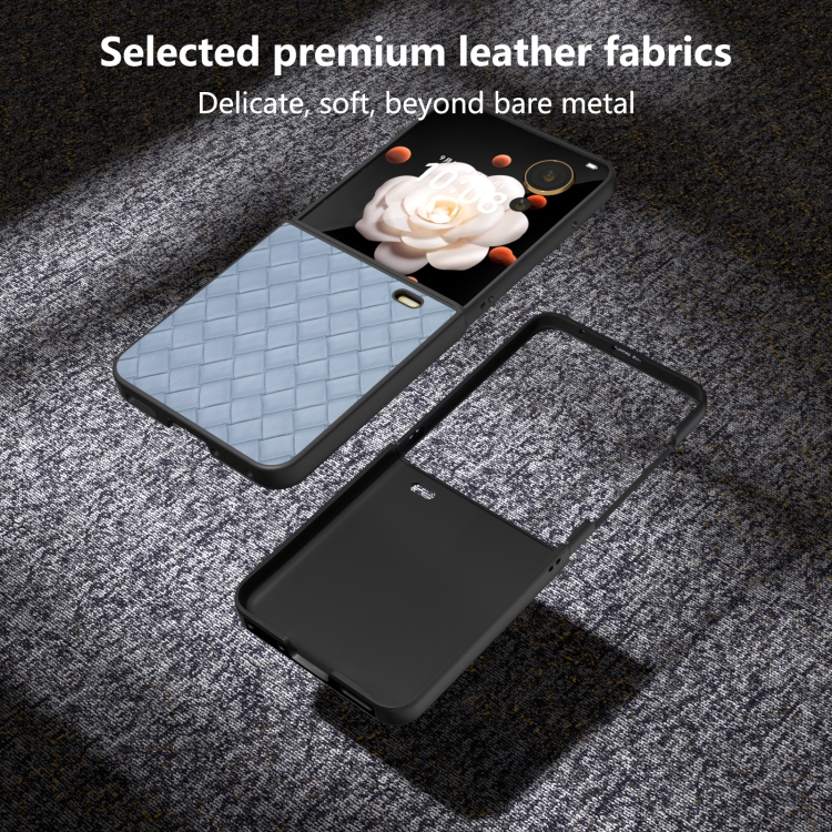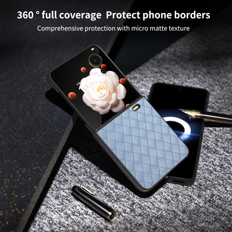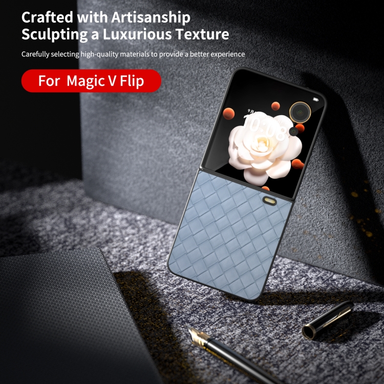 Funda para Honor Magic V Flip de PU con Textura Tejida y Marco Negro (Azul Claro)