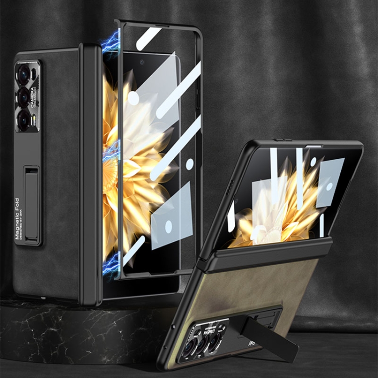 Funda de Cuero Gkk para Honor Magic V2 con Bisagra Plegable Esmerilada y Soporte (Gris)