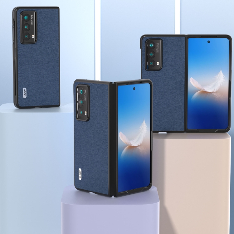Funda para Honor Magic Vs2 Abeel Textura Litchi Cuero Genuino + PC (Azul)
