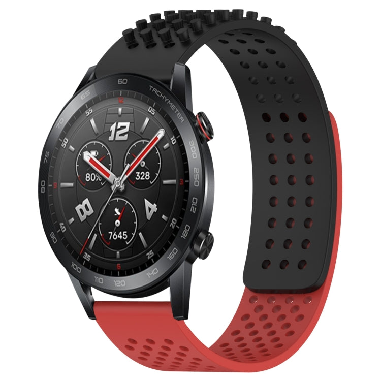 Correa de Silicona para Honor Watch GS 3I con Puntos 3D Transpirables y Orificios 22mm (Negro + Rojo)