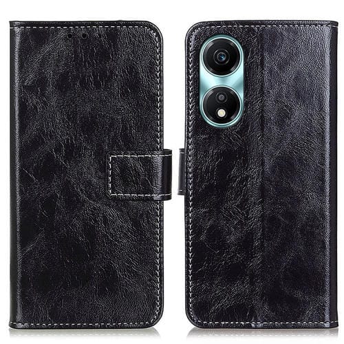 Funda de Cuero para Honor X5 Plus con Tapa y Textura Retro Crazy Horse (Negro)