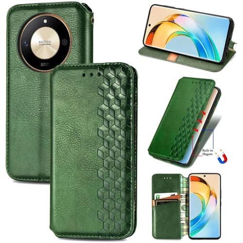 Funda para Honor X50 Cubic Grid Cuero Magnético Prensado (Verde)