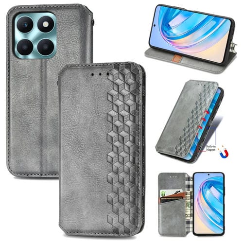 Funda para Honor X6A Cubic Grid de Cuero Magnético Prensado (Gris)