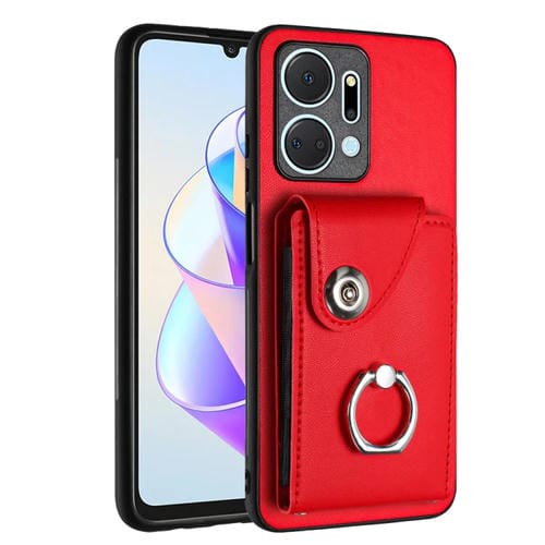 Funda para Honor X7A y Play7T de PU con Soporte para Anillo y Bolsa para Tarjeta (Rojo)