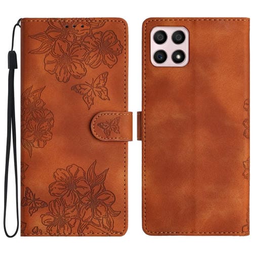 Funda para Honor X8 X30I Cherry Blossom Butterfly Skin Feel en PU Relieve (Marrón)