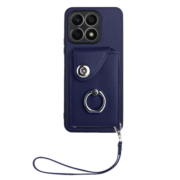 Funda para Honor X8A de PU con Soporte para Anillo y Bolsa para Tarjeta con Cordón (Azul)