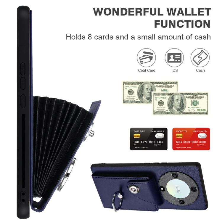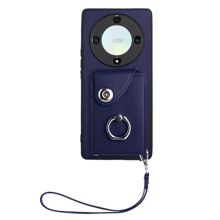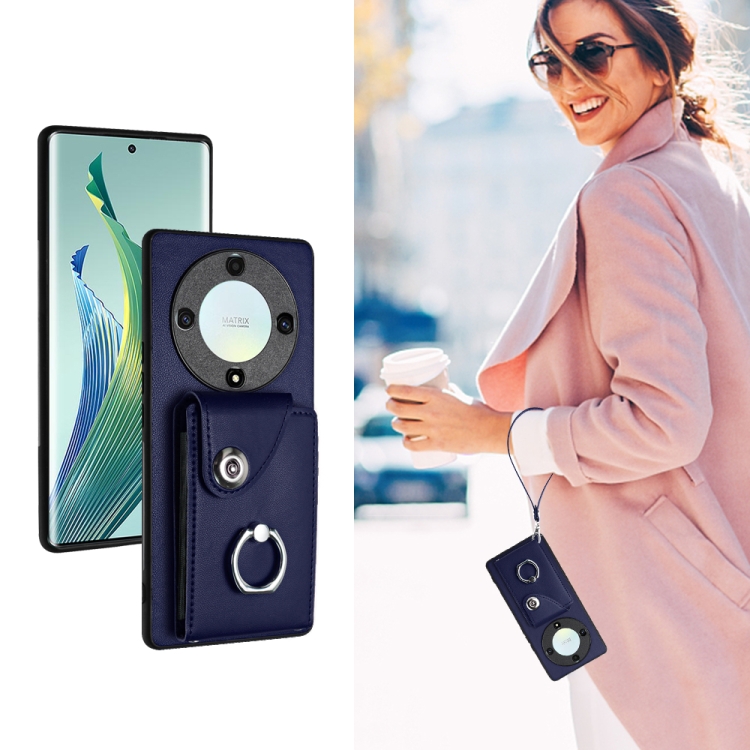Funda para Honor X9A y Magic5 Lite de PU con Soporte, Bolsa para Tarjeta y Cordón (Azul)