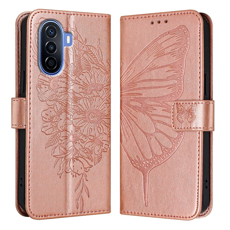 Funda de Cuero Huawei Enjoy 50 4G Nova Y70 Plus con Mariposa en Relieve (Oro Rosa)