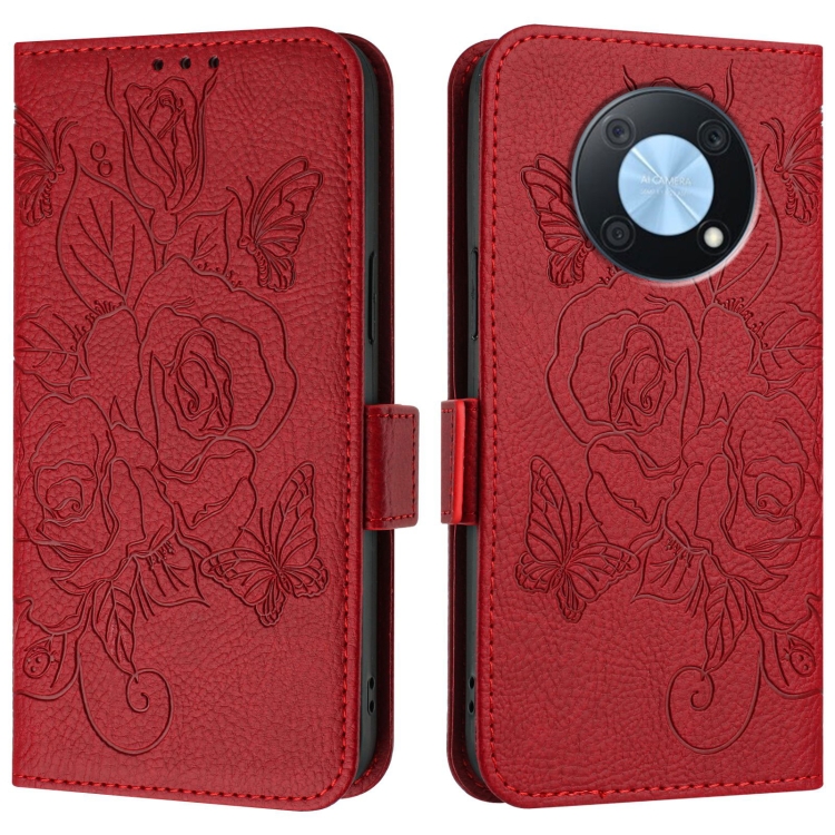 - 1x Funda de Cuero Antirrobo con RFID para Huawei Enjoy 50 Pro 4G y Nova Y90 en Relieve (Rojo)