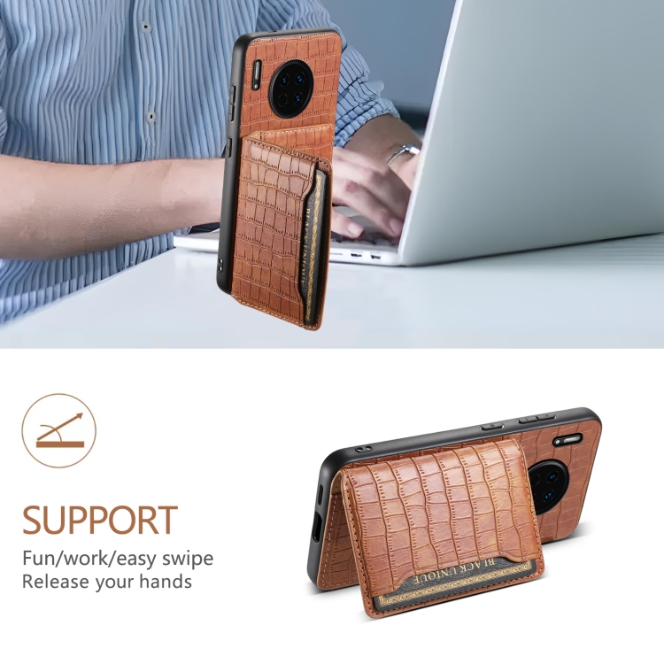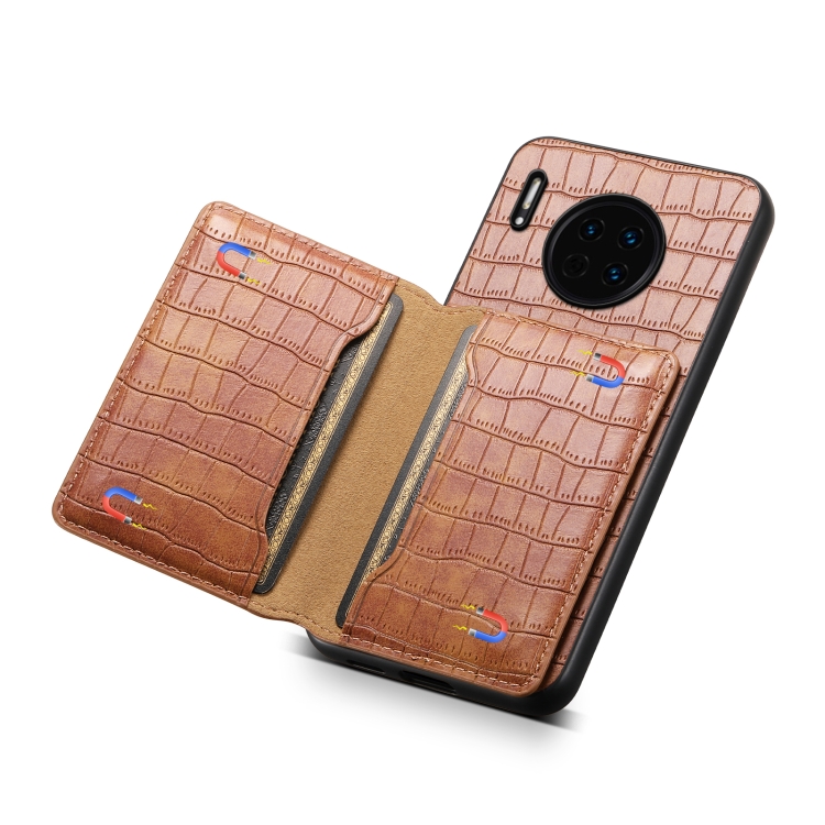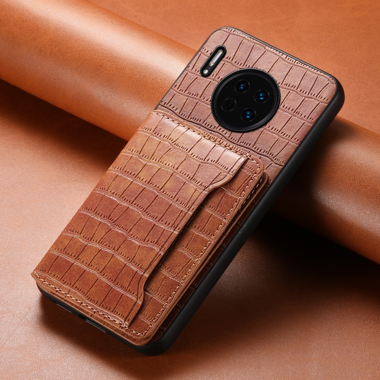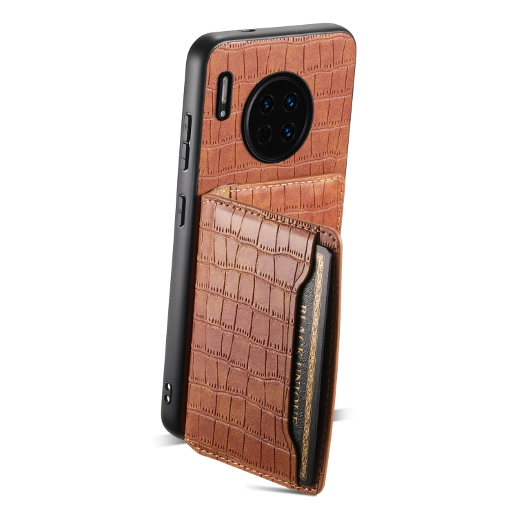 Funda para Huawei Mate 30 con Diseño Bolsa para Tarjetas y Textura de Cocodrilo (Marrón)