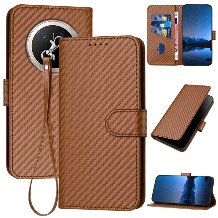 Funda de Cuero Huawei Mate 70 Pro y Mate 70 Pro+ Yx0070 con Hebilla de Fibra de Carbono y Cordón (Café)