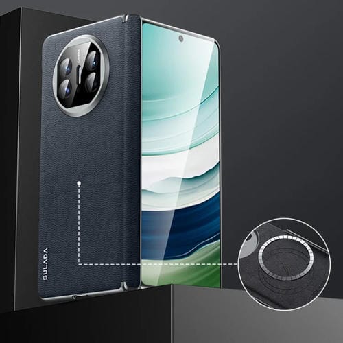 Capa Superior de Cuero de Vaca sin Marco + Funda para Huawei Mate X5 Sulada (Azul)