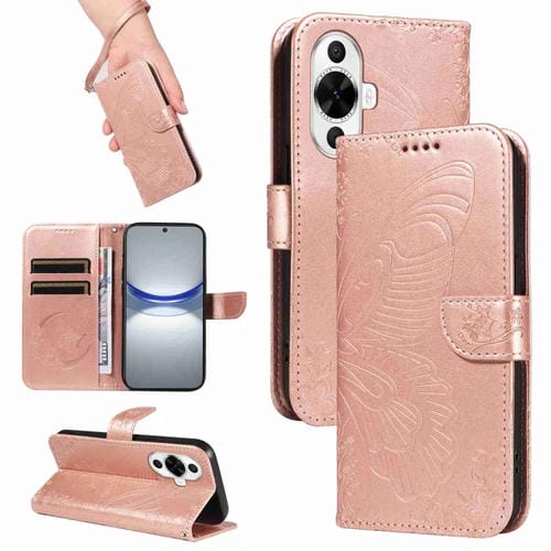 Funda para Huawei Nova 11 5G y 12S 4G de Cuero con Relieve Mariposa y Cola de Golondrina (Oro Rosa)