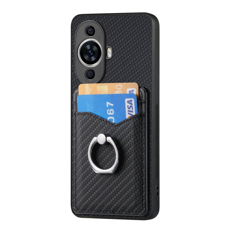 Funda para Huawei Nova 11 con Anillo y Billetera para Tarjeta de Fibra de Carbono (Negro)