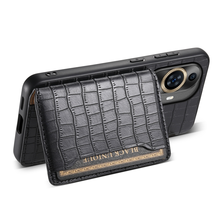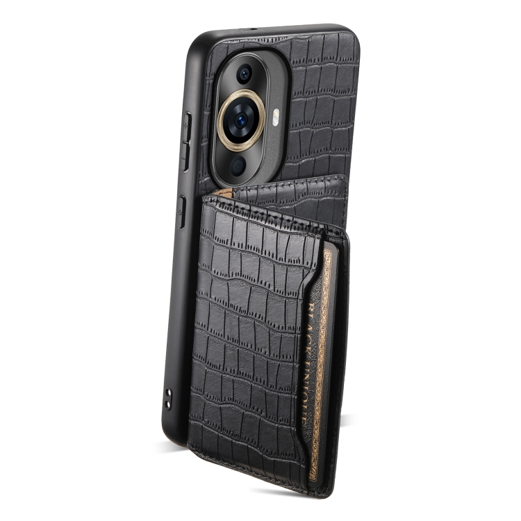 Funda para Huawei Nova 11 con Diseño Bolsa para Tarjetas y Textura de Cocodrilo (Negro)