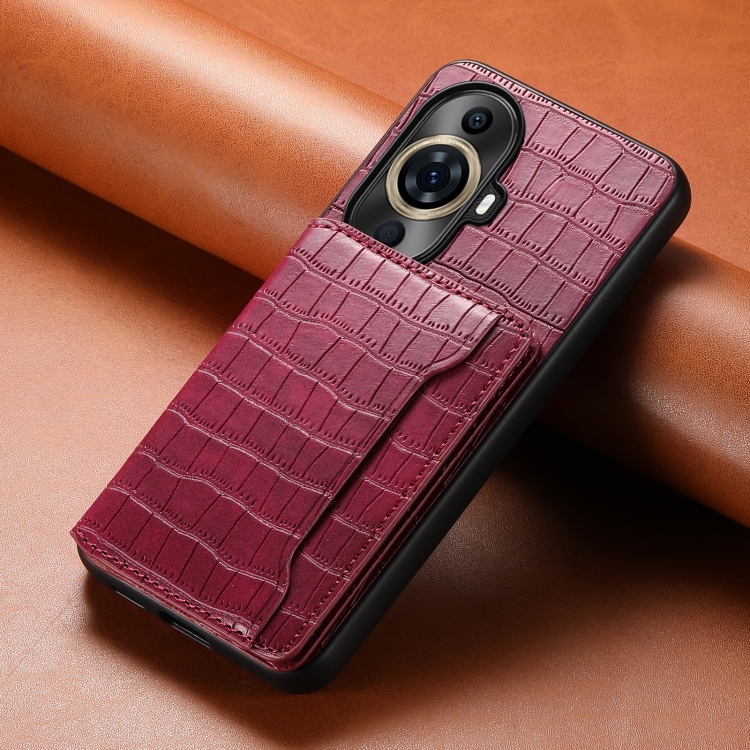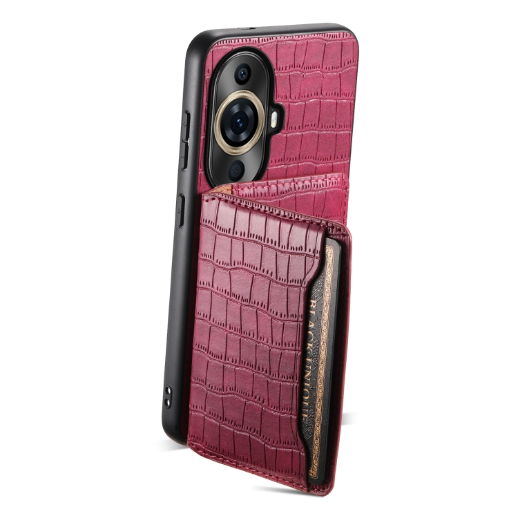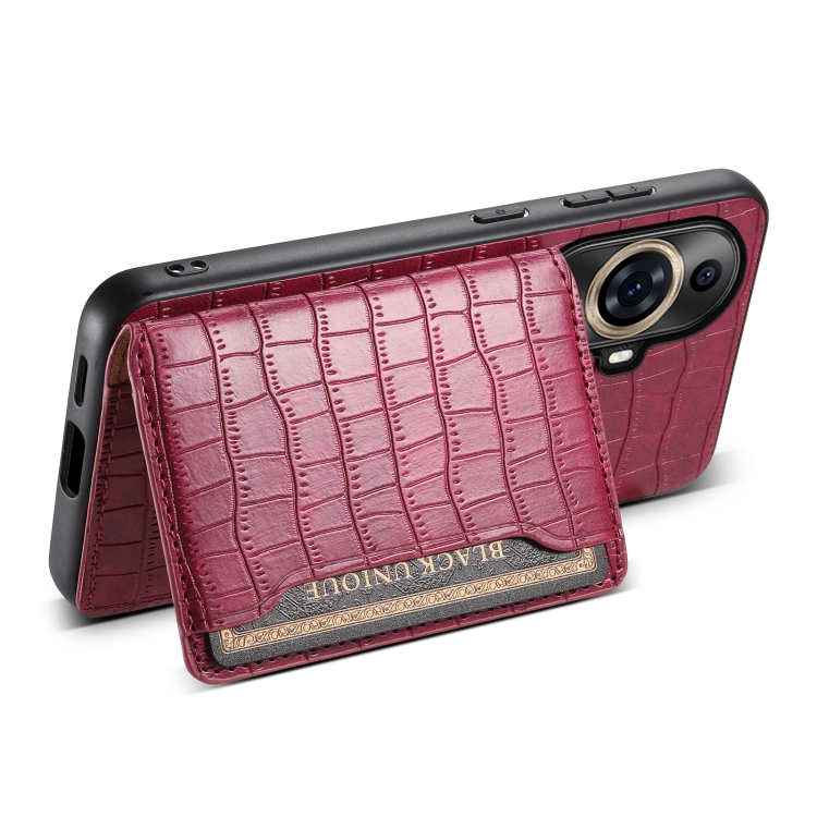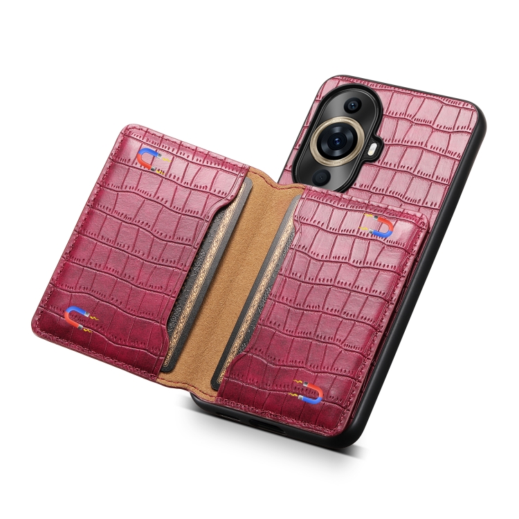 Funda para Huawei Nova 11 Pro con Diseño Bolsa para Tarjetas y Textura de Cocodrilo (Rojo)