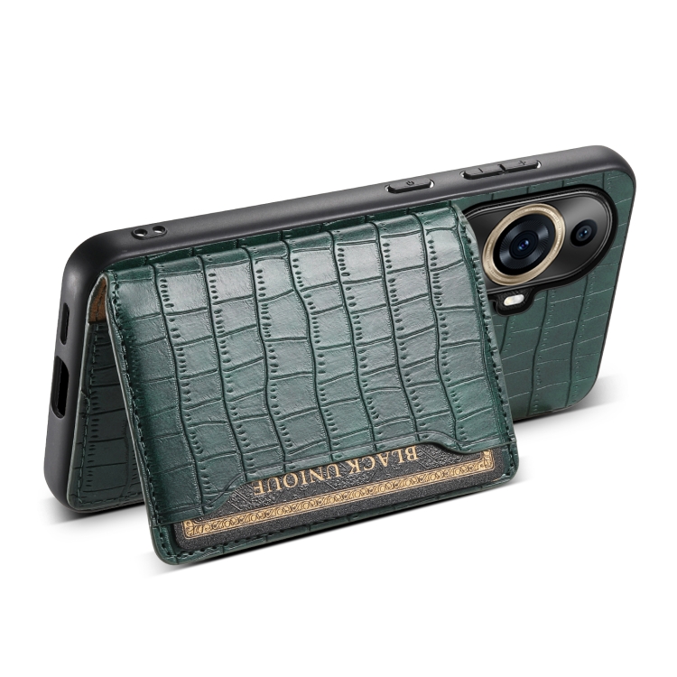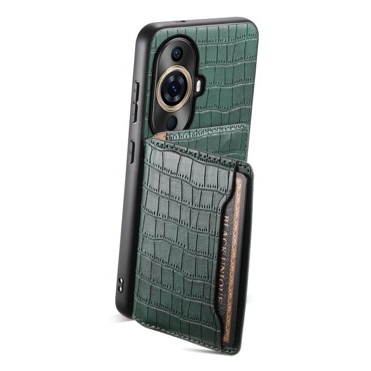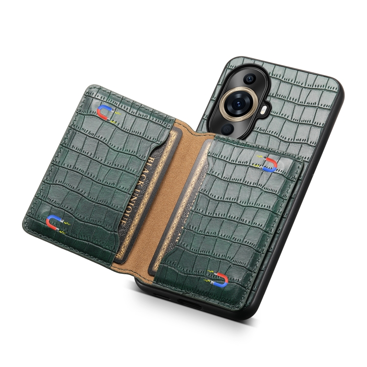 Funda para Huawei Nova 11 Pro con Diseño Bolsa para Tarjetas y Textura de Cocodrilo (Verde)