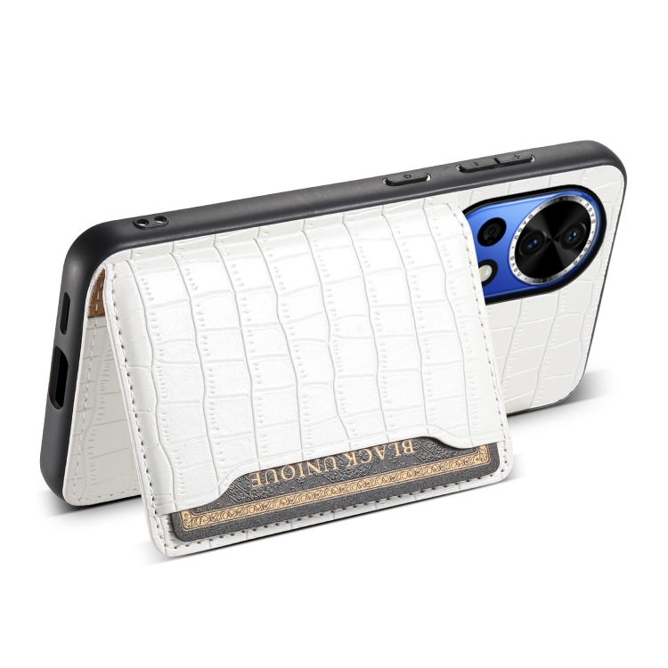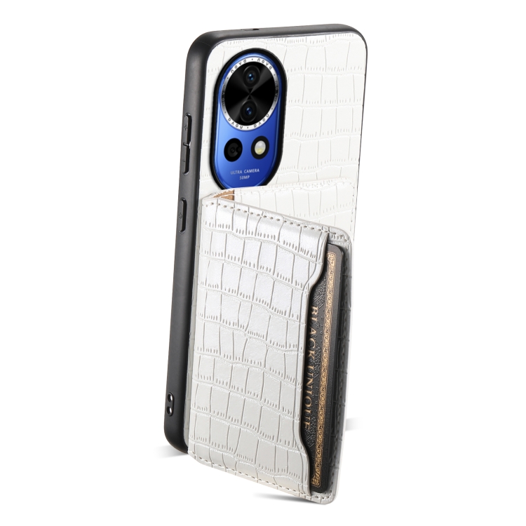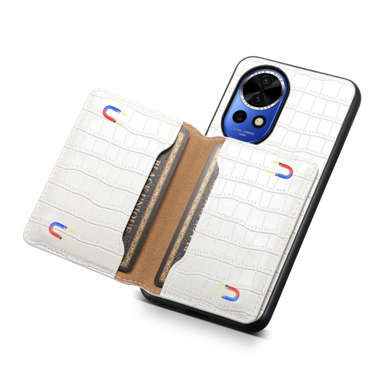 Estuche para Huawei Nova 12 con Diseño Bolsa para Tarjetas y Textura Cocodrilo (Blanco)