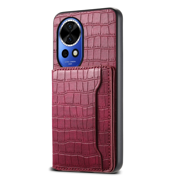 Estuche para Huawei Nova 12 con Diseño Bolsa para Tarjetas y Textura de Cocodrilo (Rojo)