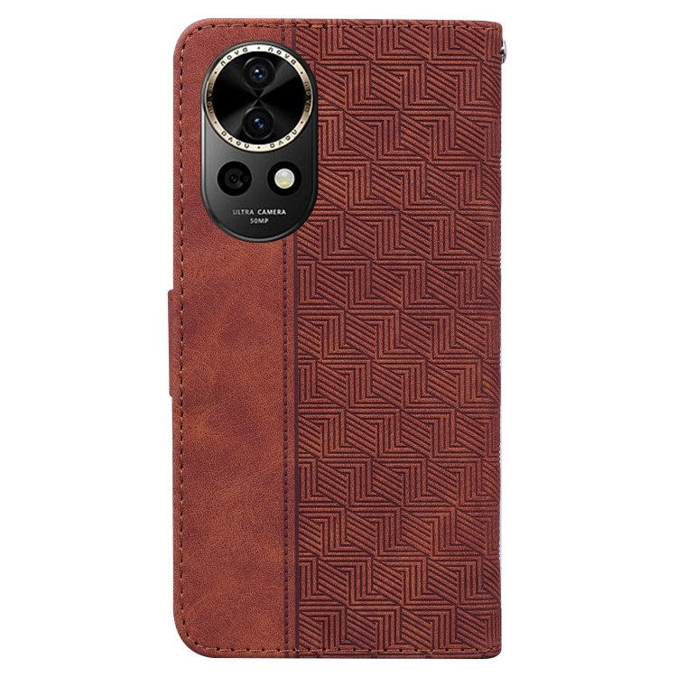 - 1x Funda de Cuero para Huawei Nova 12 con Relieve Geométrico (Marrón)