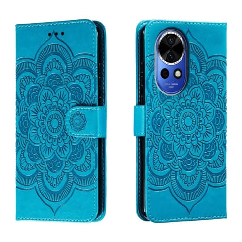 Funda de Cuero para Huawei Nova 12 con Patrón en Relieve Sun Mandala (Azul)