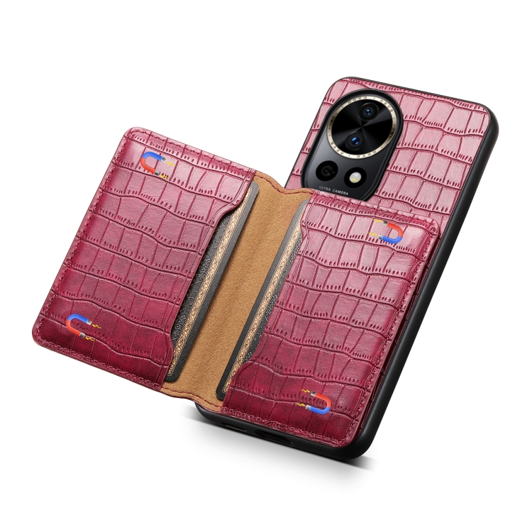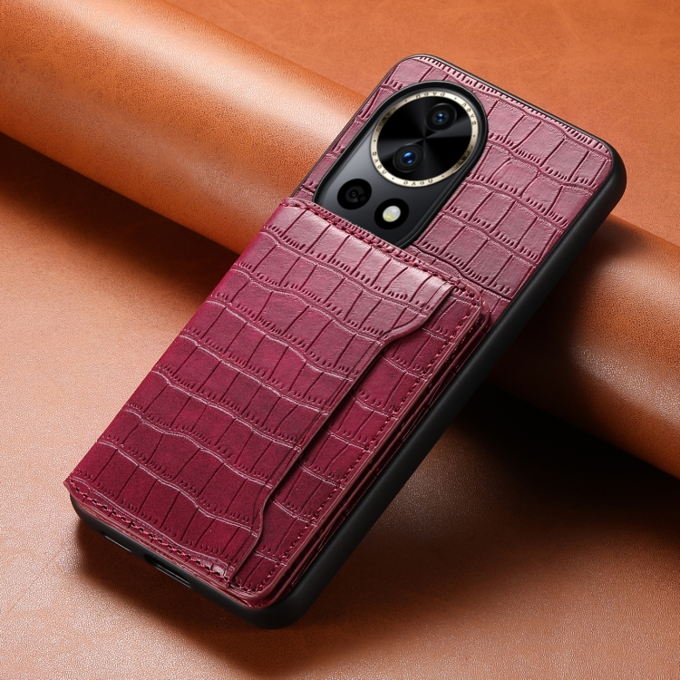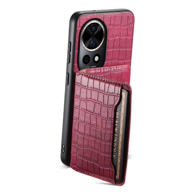 Funda para Huawei Nova 12 Pro con Diseño Bolsa para Tarjetas y Textura de Cocodrilo (Rojo)