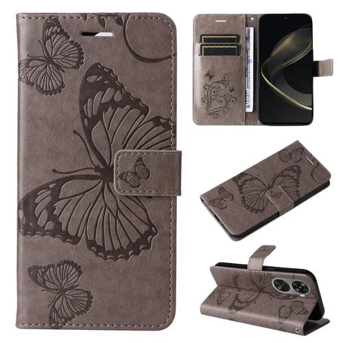 - 1x Funda para Huawei Nova 12 Se y Nova 11 Se de Cuero con Tapa y Patrón Mariposa 3D (Gris)
