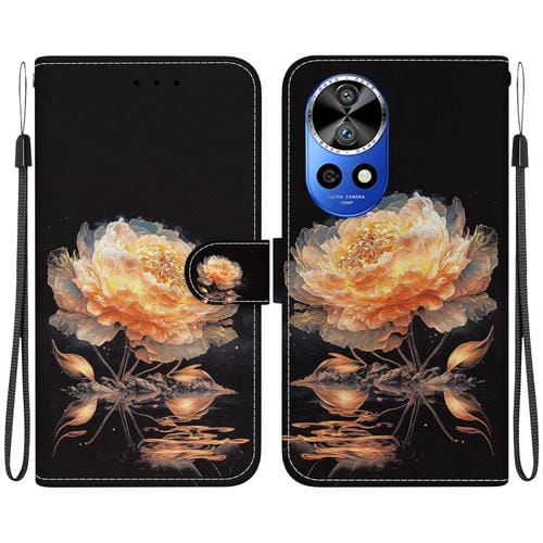 • 1x Funda de Cuero para Huawei Nova 12 Ultra con Dibujo Coloreado Crystal Texture (Peonía Dorada)