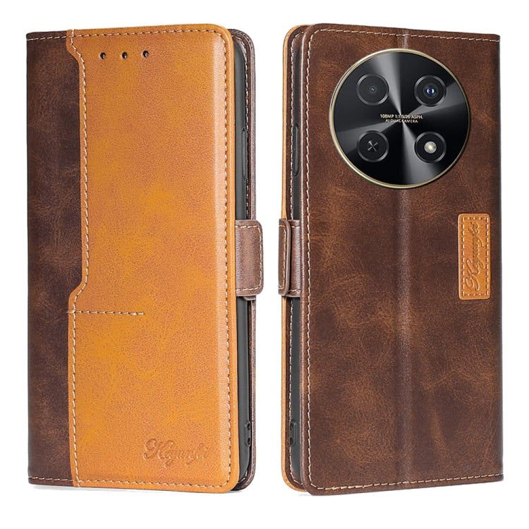 Funda de Cuero para Huawei Nova 12I 4G con Hebilla Lateral en Contraste (Marrón Oscuro + Dorado)