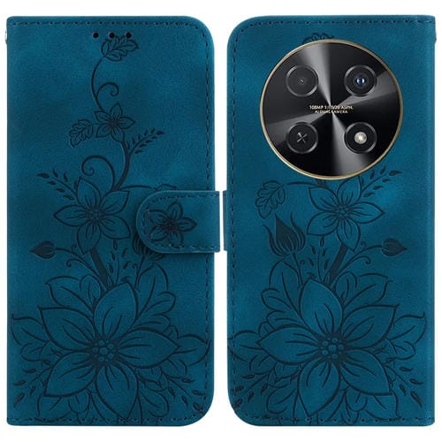 - 1x Funda de Cuero para Huawei Nova 12I 4G Global Lily en Relieve (Azul Oscuro)