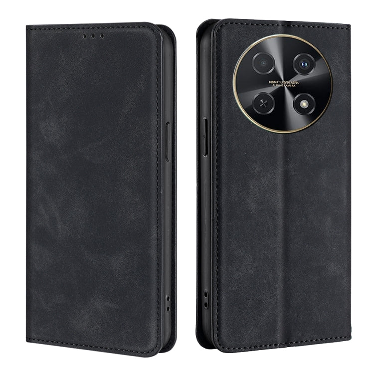 Funda de Cuero Magnética Skin Feel para Huawei Nova 12I 4G (Negro)
