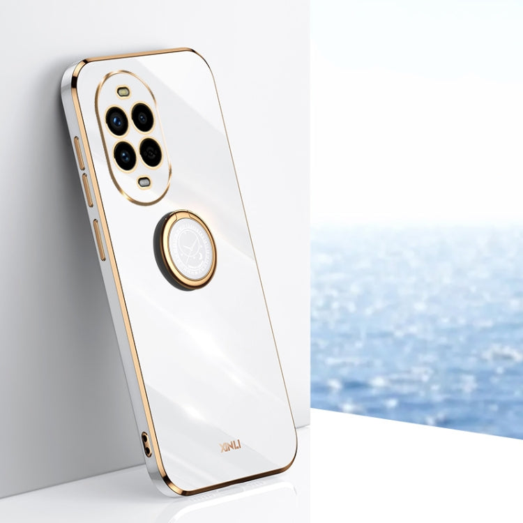 Funda Huawei Nova 13 Pro Xinli TPU a Prueba de Golpes con Borde Dorado y Soporte para Anillo (Blanco)