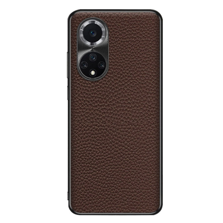 Funda para Huawei Nova 9 Pro con Textura Litchi de Cuero Genuino (Café)