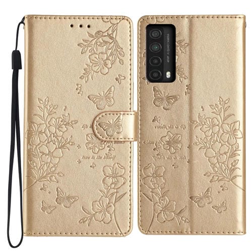 Funda para Huawei P Smart 2021 y Y7A de Cuero con Relieve Flor y Mariposa (Dorado)