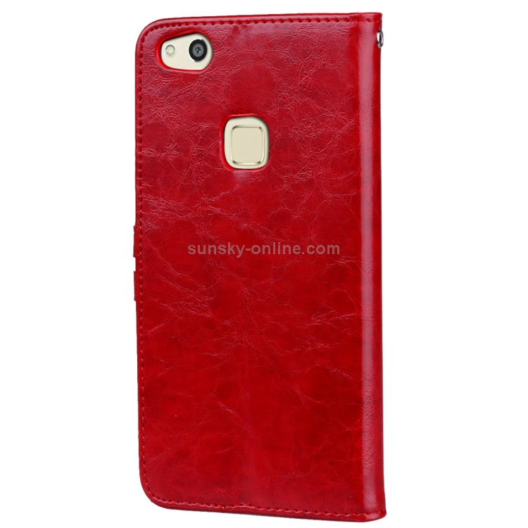 Funda de Cuero para Huawei P10 Lite con Tapa Horizontal, Soporte, Ranuras para Tarjetas y Billetera (Rojo)