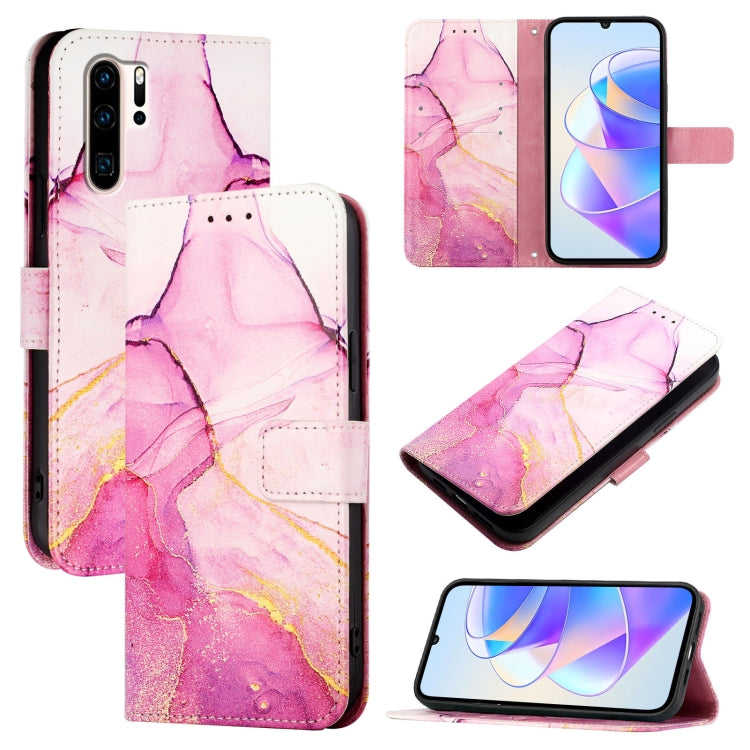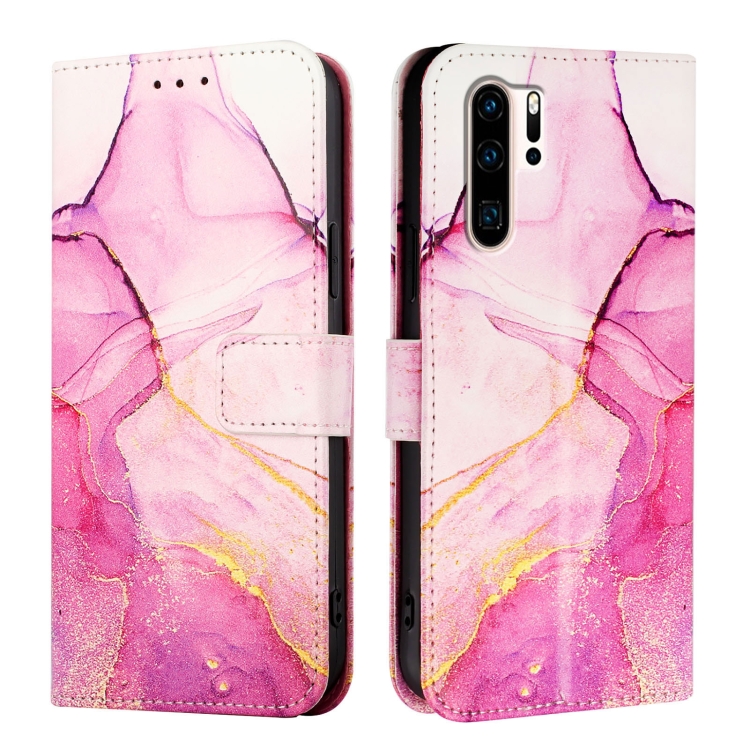 Funda de Cuero para Huawei P30 Pro Pt003 con Tapa y Patrón Mármol (Rosa Púrpura Dorado)