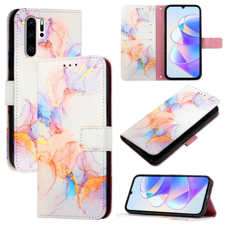 Funda de Cuero para Huawei P30 Pro Pt003 con Tapa y Patrón Mármol (Blanco)
