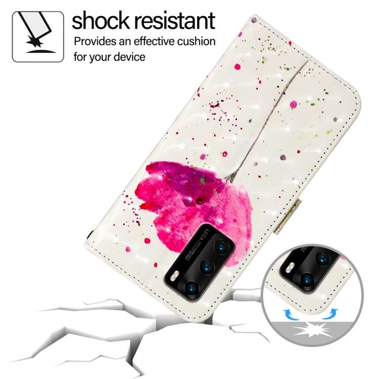 - 1x Funda de Cuero para Huawei P40 con Tapa Horizontal y Pintura 3D (Flor)