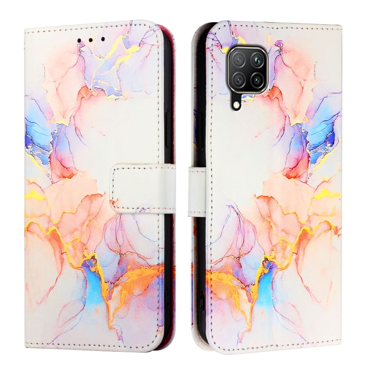 Funda de Cuero con Tapa Huawei P40 Lite Nova 6 Se Pt003 Patrón Mármol (Blanco)