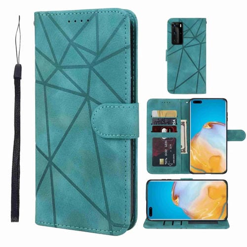 - 1x Funda de Cuero para Huawei P40 Pro con Líneas Geométricas (Verde)