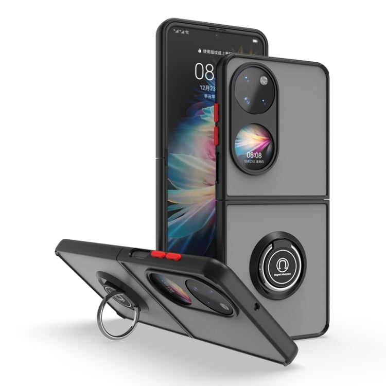 Funda para Huawei P50 Q Shadow I Ring Kickstand PC y TPU Hybrid (Rojo Negro)