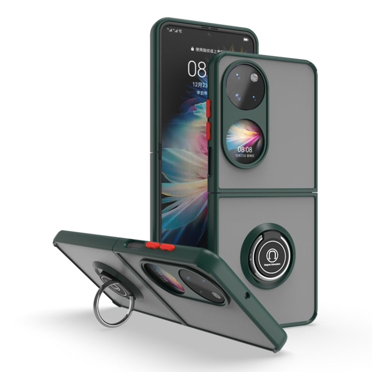 Funda híbrida para Huawei P50 P50 Q Shadow I con Ring Kickstand PC y TPU (Verde Oscuro)